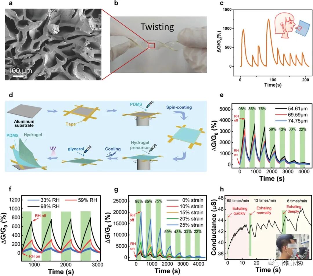 图6 由功能性水凝胶制成的柔性、可拉伸湿度传感器