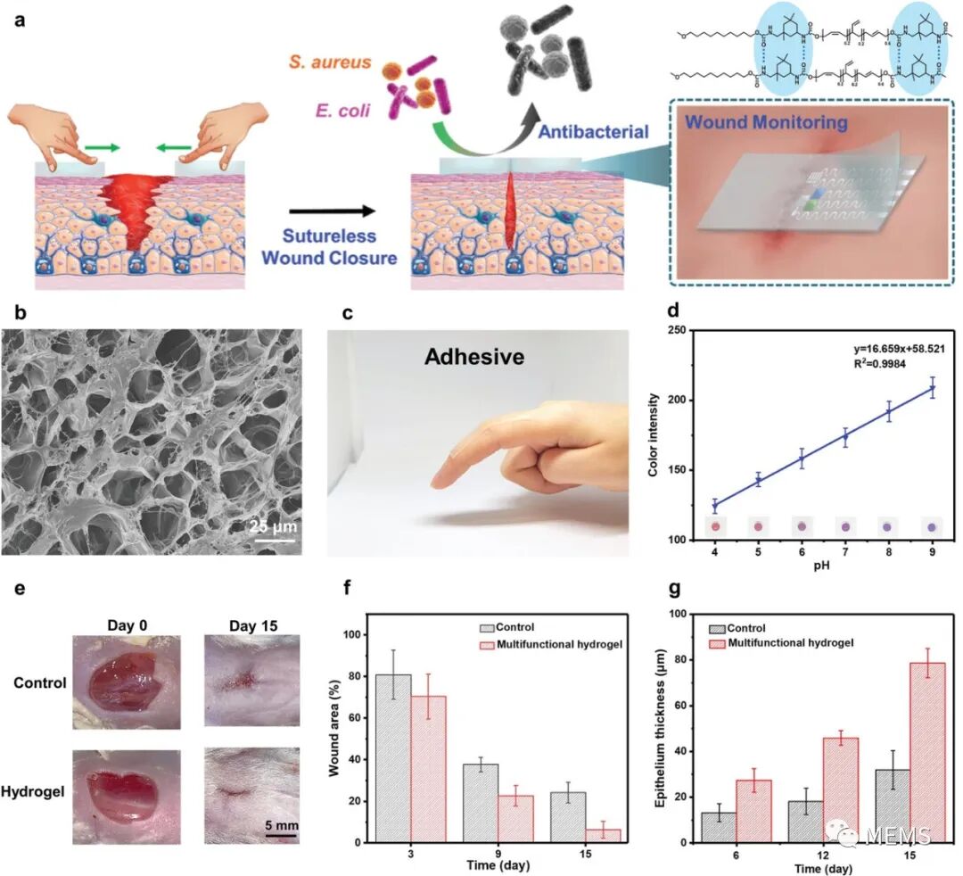 图9 由功能性水凝胶制成的柔性、可拉伸伤口敷料